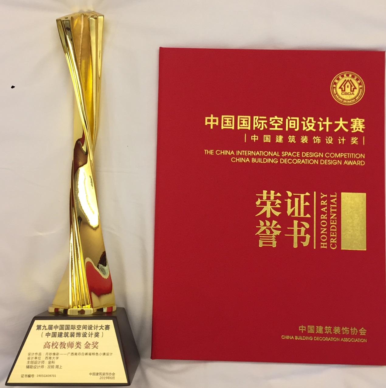 6月21日至22日,“2019中国建筑装饰产业发展论坛暨第九届中国国际空间设计大赛(中国建筑装饰设计奖)颁奖典礼”在深圳市福田区隆重举行。美术学院金科教授受邀出席,其设计作品《丹砂焕彩——广西南丹白裤瑶特色小镇设计》荣获高校教师类金奖。