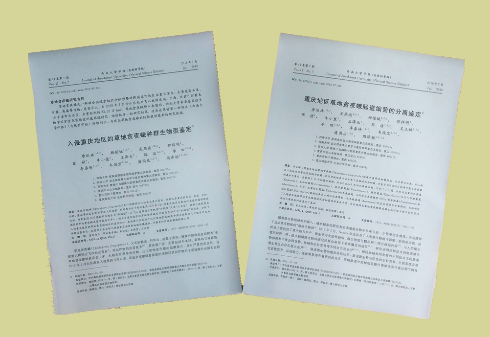 草地贪夜蛾是一种联合国粮农组织全球预警的重大洲际迁飞性农业害虫,自2019年1月从东南亚侵入我国云南、广西以来,已经向北迁飞蔓延了19个省市自治区,主要危害玉米、高粱等大宗粮食作物,危害巨大。该虫快速迁徙引起了国务院的重视,近期农业农村部专门召开了草地贪夜蛾的防控会议,国内许多科研院所也纷纷投入人财物对该害虫进行研究。自今年5月初草地贪夜蛾在重庆发现以来,学校家蚕基因组生物学国家重点实验室潘国庆研究员课题组迅速行动,在重庆市各级农业部门的大力配合下,第一时间从各区县收集虫样,快速开展了草地贪夜蛾生物型和肠道菌群的研究,希望能为我国草地贪夜蛾的综合防控提供第一手的详实数据。《西南大学学报(自科版)》关注学术热点研究,积极服务于学校重点科学研究,与该课题组紧密合作,及时调整出刊计划,组织精干编辑认真、高效完成了稿件的评审、编辑工作,仅仅用一周时间,课题组两篇关于草地贪夜蛾的最新研究成果《入侵重庆地区的草地贪夜蛾种群生物型鉴定》、《重庆地区草地贪夜蛾肠道细菌的分离鉴定》通过该学报于7月4日在中国知网优先发表,及时发布了国家急需的草地贪夜蛾相关研究报告,为治理草地贪夜蛾提供了基础数据。