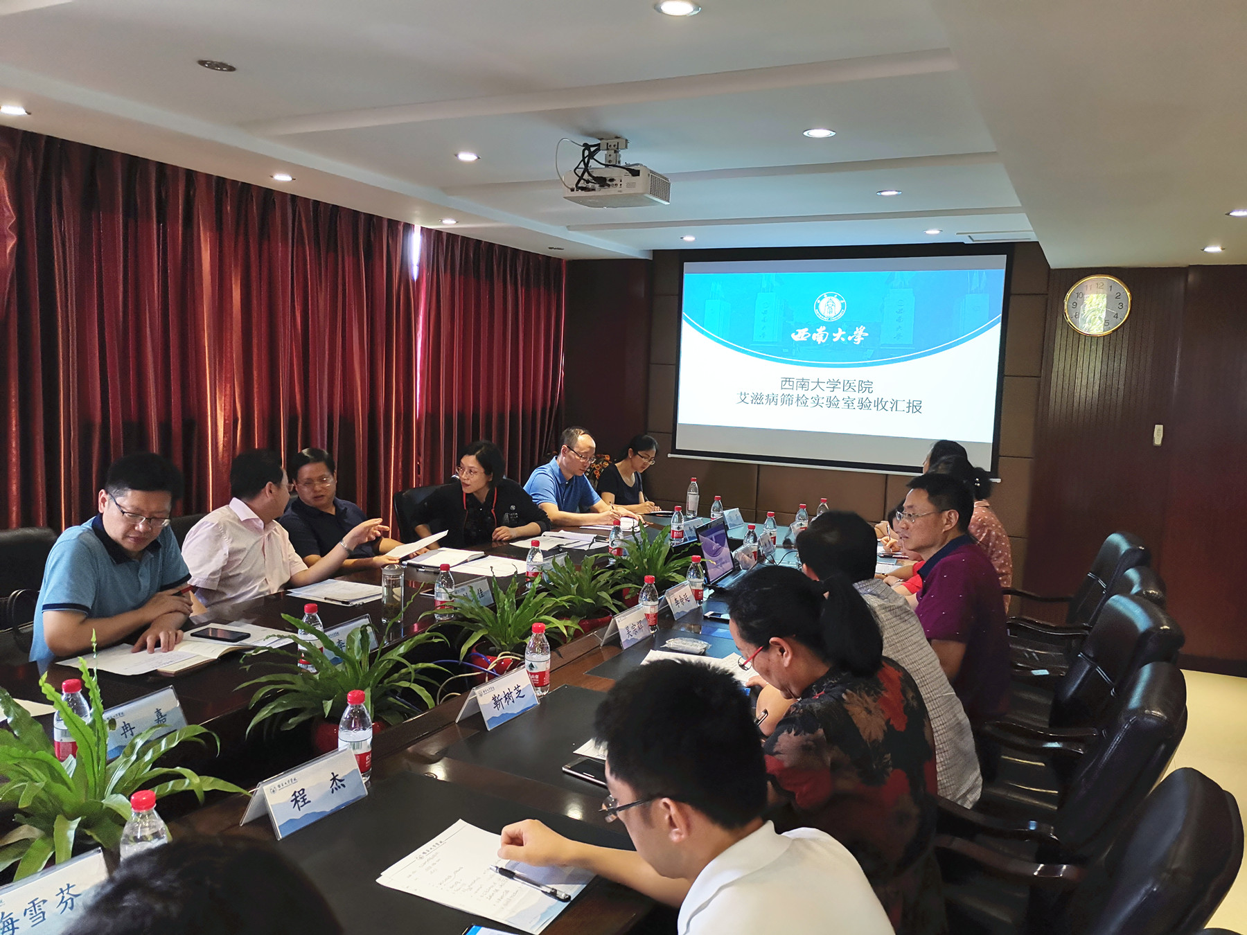 7月10日,由重庆市卫生健康委员会副主任刘克佳带队,重庆市疾病预防控制中心、合川区疾病预防控制中心、北碚区疾病预防控制中心组成的专家组一行12人到校医院艾滋病筛检实验室进行了现场验收,校医院院长吴宗辉、党总支书记李余廷、副院长靳树芝、副院长游莉以及相关部门参加了现场验收。历经4小时的现场检测评审和综合评分,以569.5分的高分(总分600分)通过全国首家高校医院艾滋病筛检实验室检查验收。