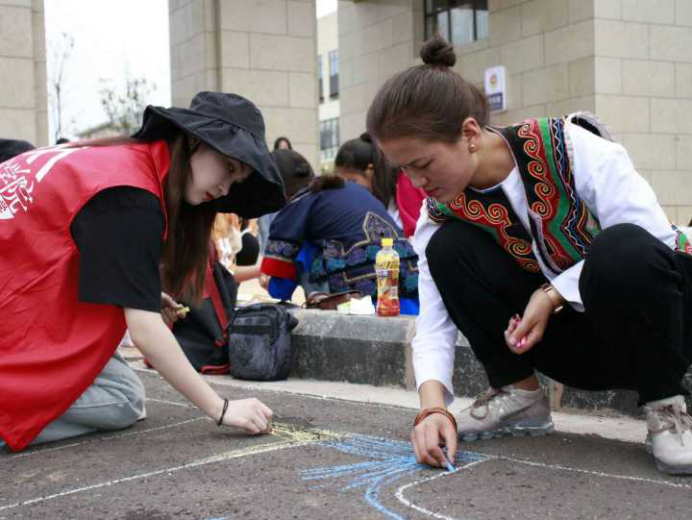 这是美术学院文化艺术服务团15名师生和200名幼师美术专业、学前教育专业、小学教育专业学生共同绘制的杰作。学校美术学院退休教师、曾自驾走完红军长征路的著名红色写生艺术家刘增宪教授带领该校美术专业13名大学生,组成“艺术关爱凉山行”暑期“三下乡”文化艺术服务团,来到西南大学对口帮扶的西昌幼儿高等师范专科学校,开展“大手牵小手”儿童美术教育等实践活动。13名大学生分散到西昌民族幼专四个班级,开展为期3天的水彩技法、速写、现代舞和现代摄影艺术基础四门课程教学,以轮班教学形式,让该校4个班级近200名学生比较迅速地掌握四种艺术基本常识和技巧。