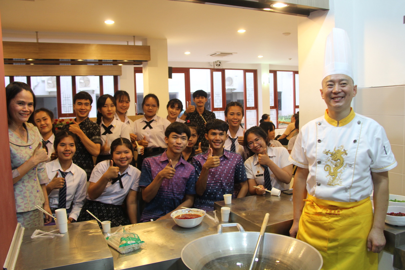 8月30日,“中国厨房”美食文化节暨西南大学泰北校友会揭牌仪式在泰国孔敬大学隆重开幕,桂园宾馆厨师团队受邀在美食文化节上一展厨艺,乐山钵钵鸡、糖醋排骨香气四溢,循香而来的嘉宾和师生在摊位前排起了长龙,品尝之后都赞不绝口。