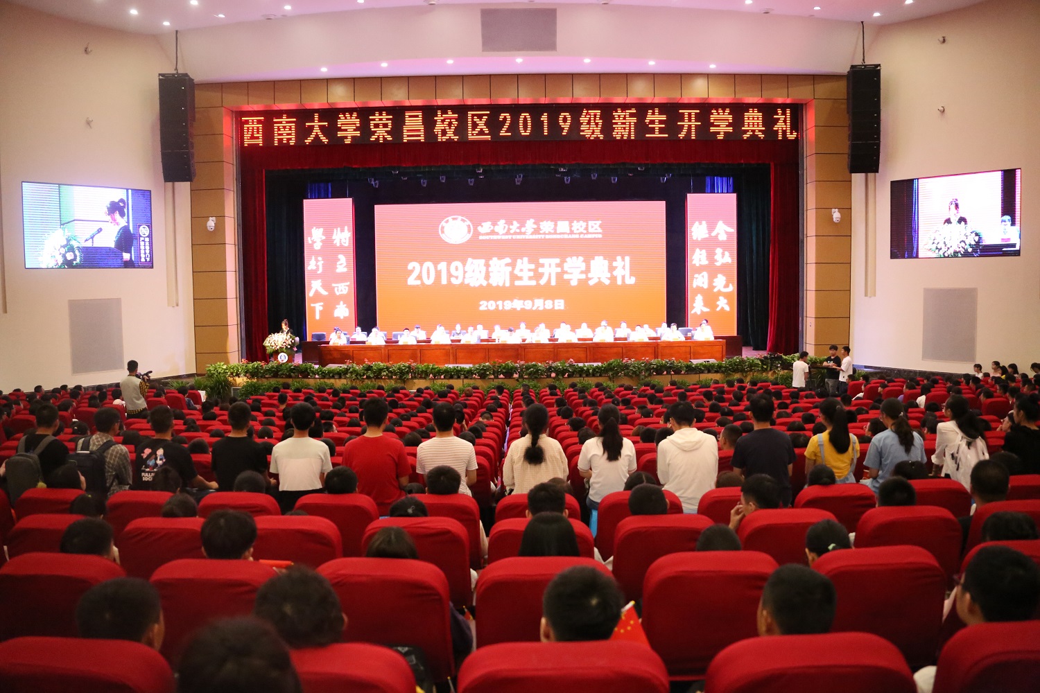乘风远航启新程,春华秋实绘佳卷。9月8日下午,荣昌校区2019级新生开学典礼举行。学校领导、党委常委、学校职能部门负责同志出席开学典礼,校区党工委管委会、动物科学学院和商贸学院党政领导、教师代表、校友代表、全体2019级新生、新生家长代表等参加典礼。典礼由学校党委副书记安春元主持。