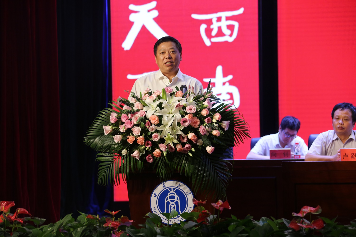 张卫国校长发表讲话,对2019级新生表示热烈欢迎,以“承西大之志,担青年之责”为题寄语新生怀揣志向,立志成才。张校长在讲话中介绍了学校和校区历史沿革、校史文化、大学精神和大家名师、杰出校友,认为荣昌是一个极具有发展潜力的地方,希望同学们在未来四年的大学生活里,立足荣昌,胸怀祖国,把握当下,追梦未来,做孜孜不倦的求知者、志存高远的奋斗者、心系天下的担当者。