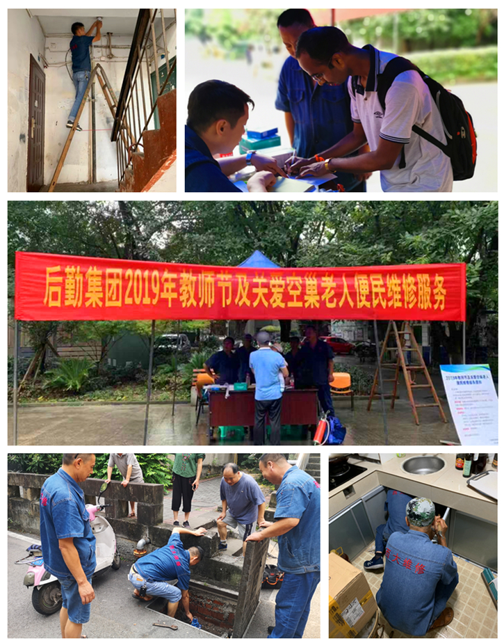 教师节来临之际,后勤集团提前谋划、统一部署,经集团党政联席会讨论确定了教师节“特惠师生服务活动”的内容、形式、要求后,相关中心各司其职,协调配合,将食品特惠售卖活动、生活用品惠卖活动、水电维修进社区及关爱空巢老人便民服务活动、“致敬与感恩”慰问活动、恒温游泳馆优惠活动、桂园酒楼感恩回馈活动等6项活动逐一落实到位。