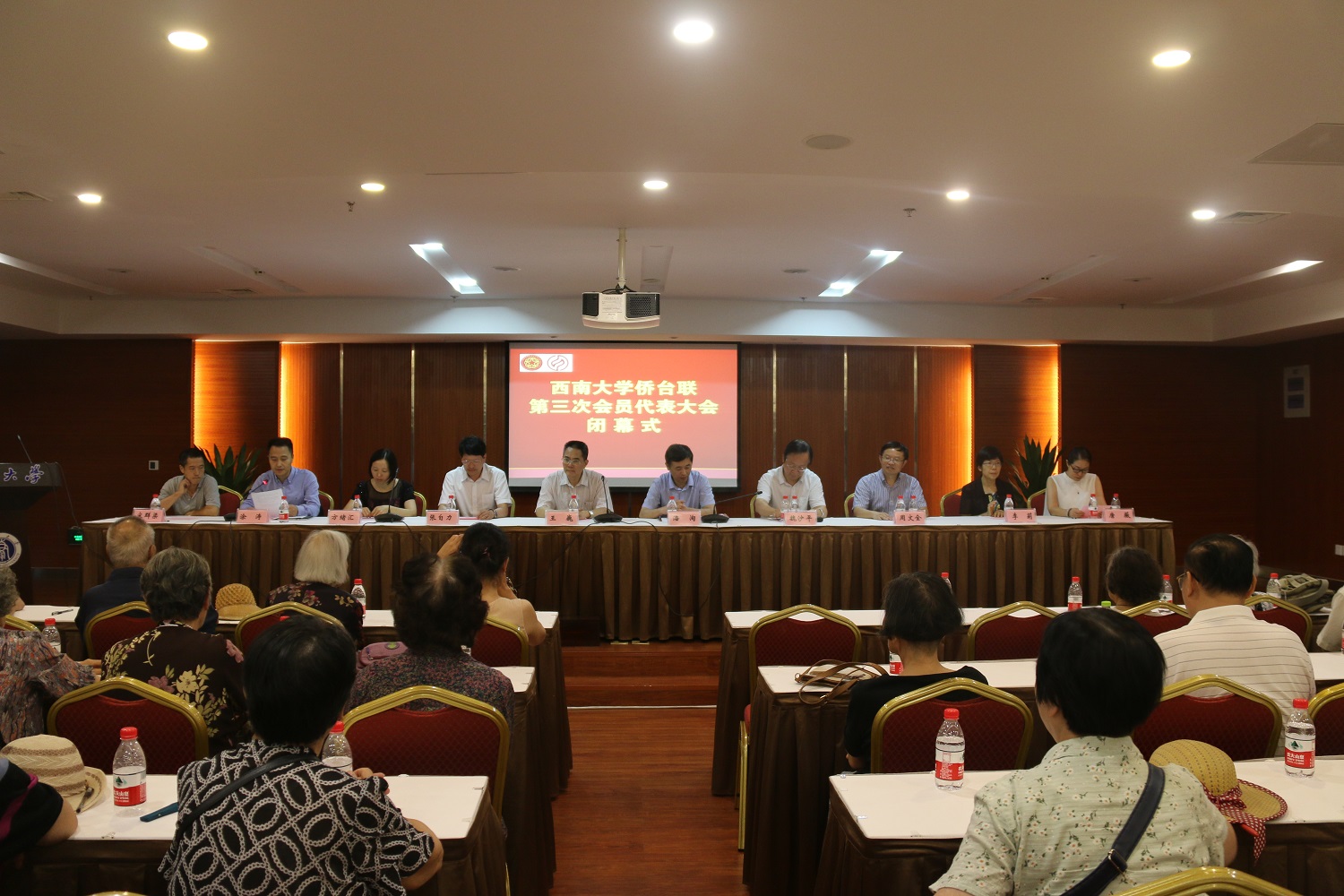 闭幕会上,党委副书记潘洵发表讲话。他充分肯定了学校侨台联过去五年取得的可喜成绩和广大侨台群众做出的独特贡献,向新当选的侨台联干部表示祝贺。他要求新一届侨台联领导班子要牢牢把握正确政治方向,筑牢共同思想政治基础;要不忘初心践行立会宗旨,用心用情服务侨台群众;要广泛汇聚侨台智慧力量,助力学校发展再谱新篇;要聚精会神搞好自身建设,不断提高侨台联工作水平。