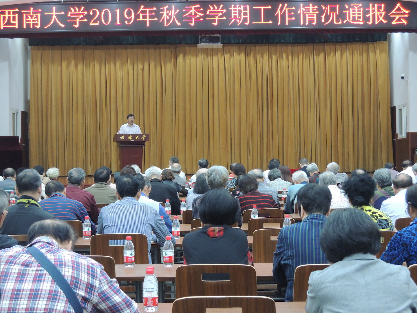 9月17日上午,学校在教职工活动中心二楼召开会议,向离退休教职工通报了2019年学校工作情况。党委办公室、校长办公室、离退休党委/离退休工作处等职能部门负责人和离退休教职工代表200余人参加会议。会议由学校党委副书记安春元主持。