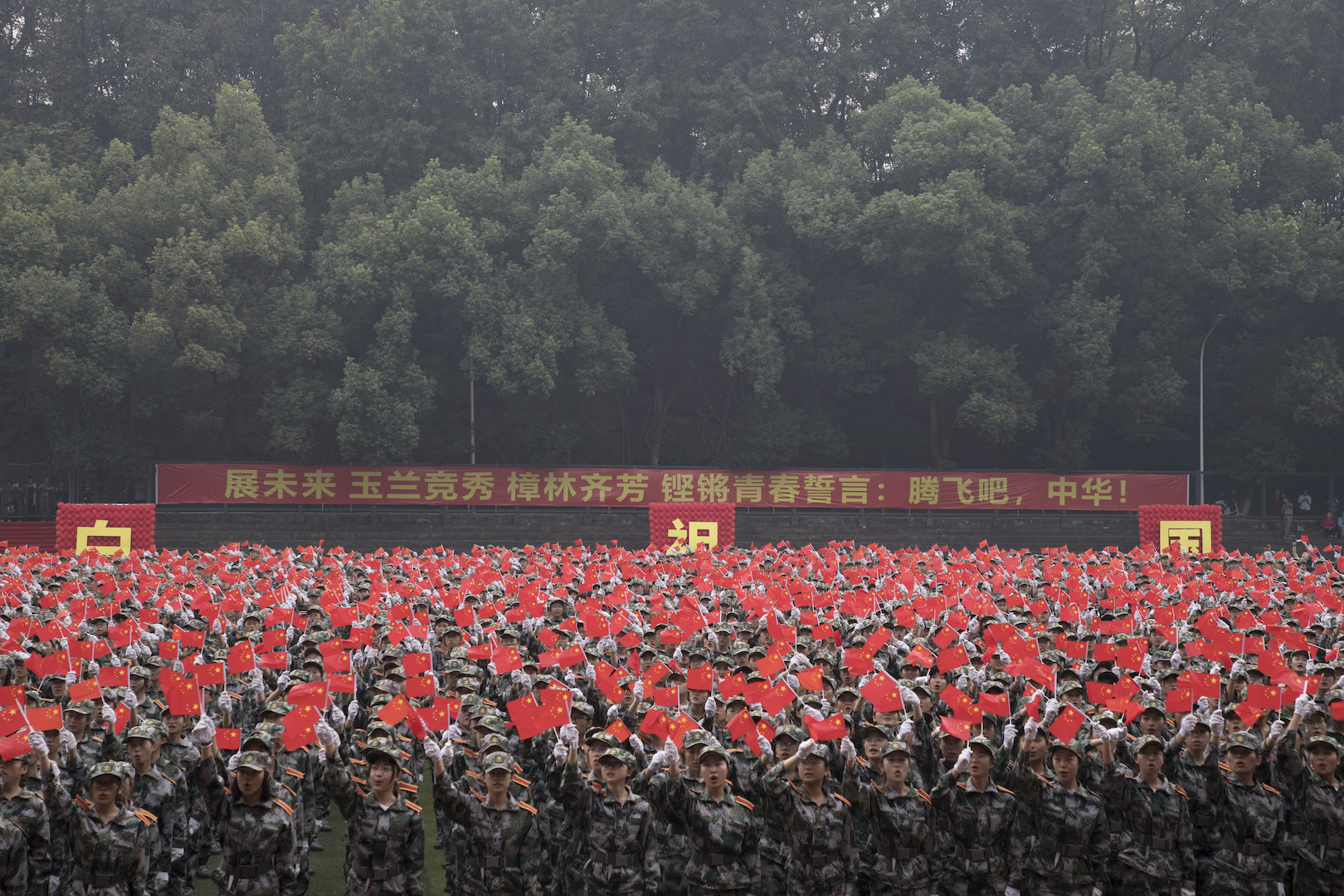 校长、军训师师长张卫国向参训同学致以问候,万名新生按照编排连队组成方阵,排列整齐,昂首挺胸,英姿飒爽,口号嘹亮,迈着雄健的步伐依次走过主席台,展现了新时代学子奋发向上的精神风貌。