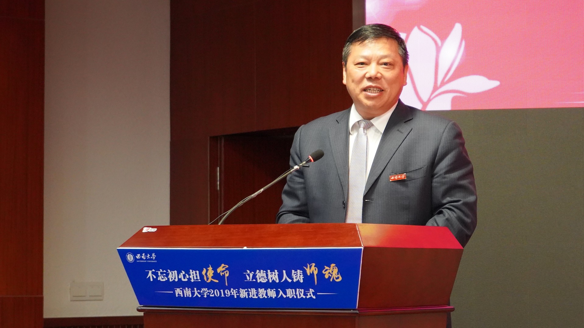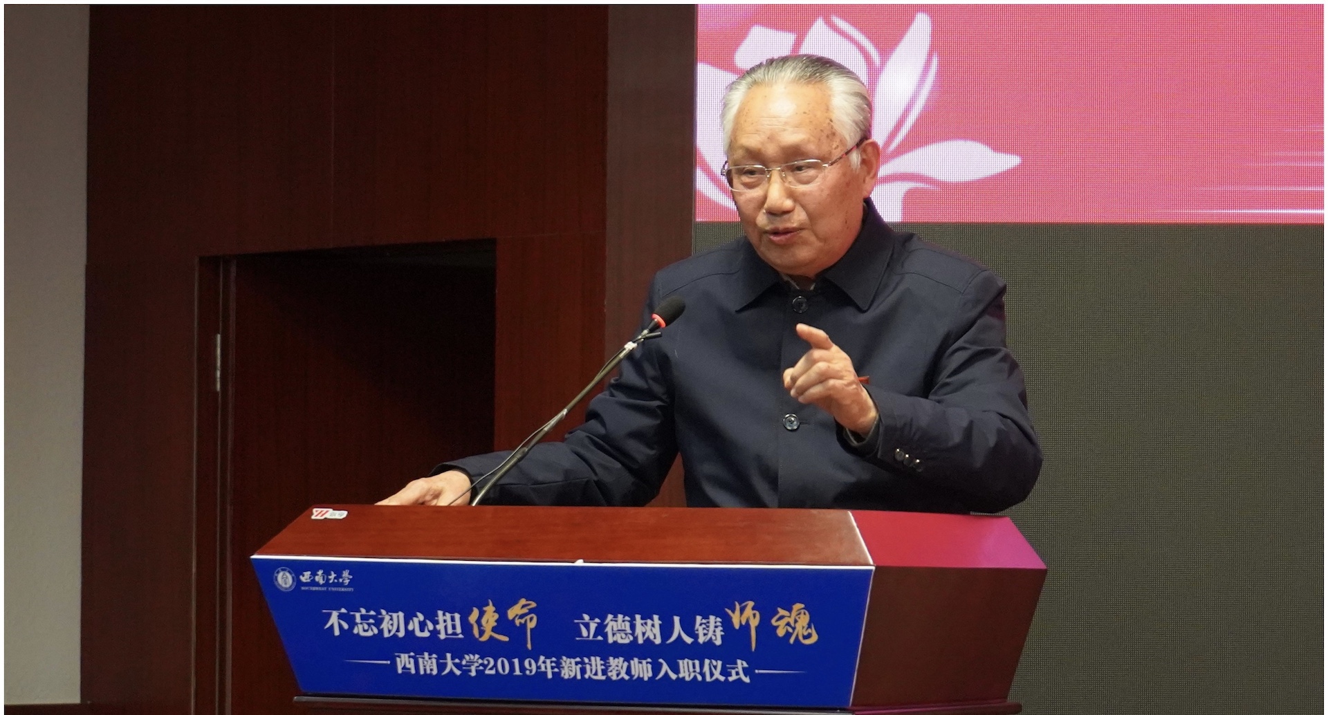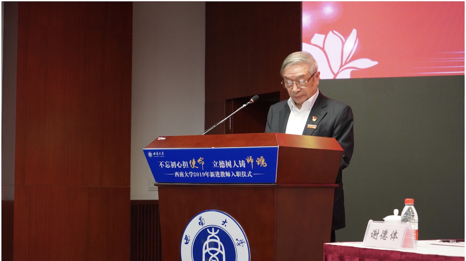 其他参加本次仪式的嘉宾也纷纷寄语新进教师,用心教书,用心育人,为西南大学这片沃土辛勤耕耘。新进教师备受鼓舞,表示这次活动“仪式感”很强,从老一辈教授手中接受校徽就像接过了为教育事业献身的接力棒,定当不忘初心,勇担使命!