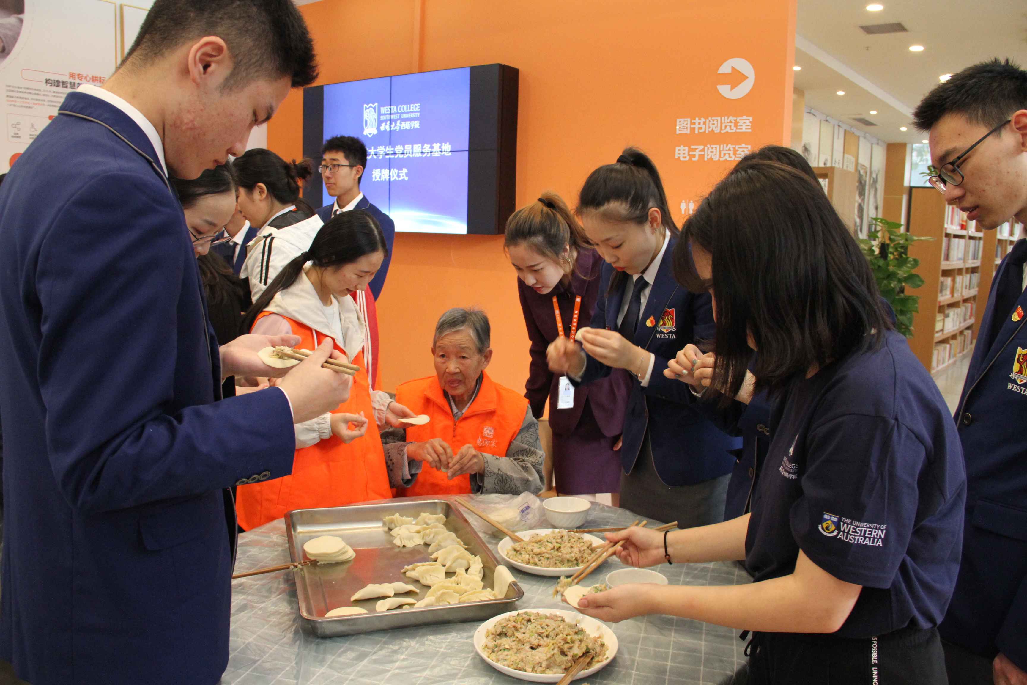 在惠源家养老中心工作人员的带领下,师生一起参观了该中心的整体环境。西塔学子为老人们带来了小提琴演奏、吉他弹唱、书法展示、舞蹈表演、诗歌朗诵等节目。现场气氛在师生与老人合唱《我和我的祖国》时达到高潮。自由交流环节,师生与老人们拉家常,包饺子,共话重庆在新中国成立70年间发生的巨变。西塔学子用相机为老人们独家定制专属相片和视频,定格美好瞬间。