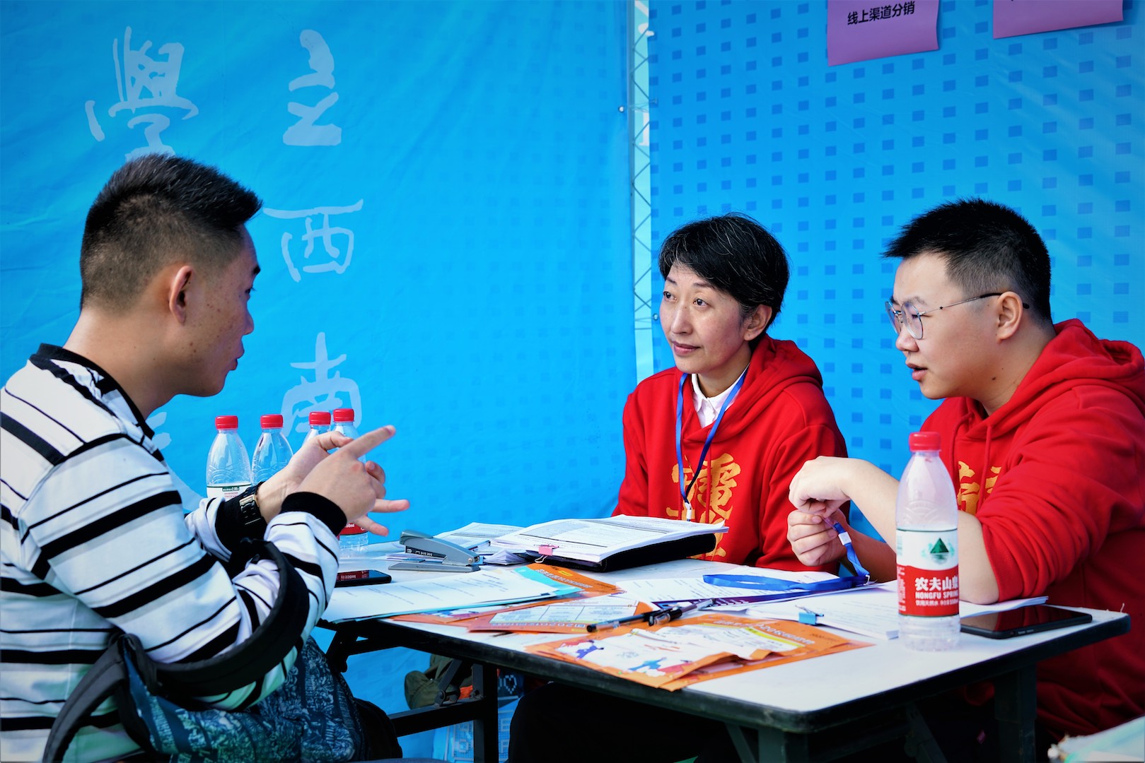 11月3日上午,学校在第四运动场举行2020届毕业生就业秋季双选会。此次双选会吸引了市内外550余家招聘单位来到现场,提供岗位2万3千余个,实现校内专业全覆盖。现场数千位毕业生递交简历、参加面试,与用人单位就人才需求等问题进行交流。