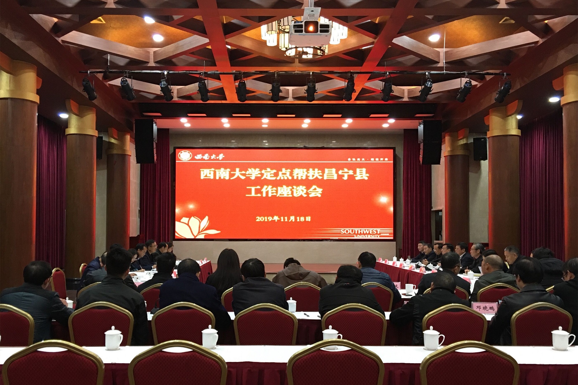 11月18日下午,学校党委书记李旭锋与苏格非书记一行进行了会谈。李旭锋书记对昌宁党政代表团到学校交流表示热烈欢迎,他指出,学校高度重视定点扶贫工作,接到帮扶任务后,多次专题研究,部署相关工作,明确帮扶思路,落实工作责任。李书记表示,学校将深学笃用习近平总书记关于扶贫的重要论述,按照教育部的要求,充分发挥自身优势,扎实推进定点帮扶工作。苏格非书记对西南大学对定点扶贫的重视和支持表示感谢,他表示将积极与学校加强沟通对接,共同做好脱贫攻坚工作。