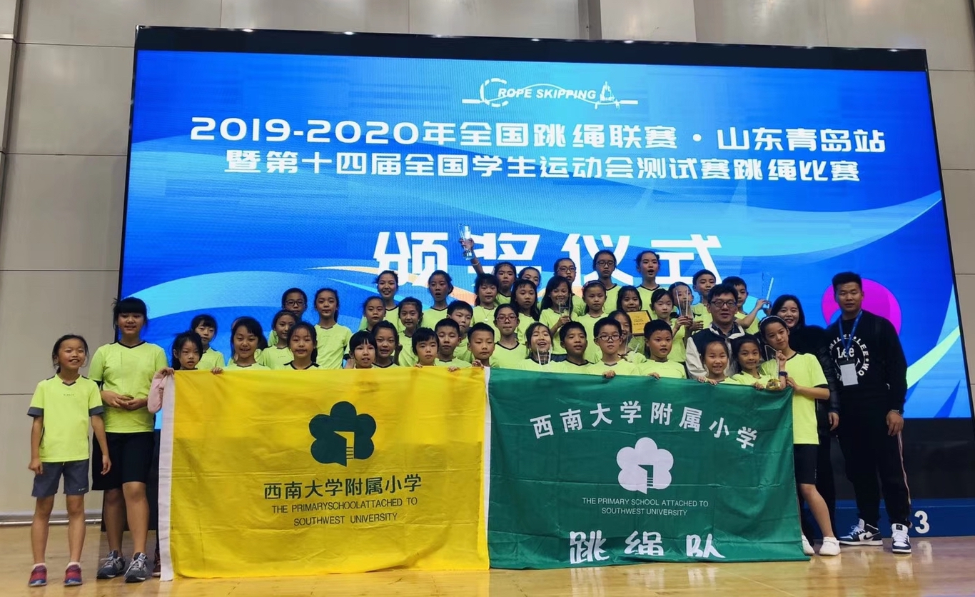 11月25日,“2019-2020年全国跳绳联赛暨第十四届全国学生运动会跳绳项目测试赛”在山东青岛圆满落幕,西南大学附属小学花样跳绳代表队荣获“优秀组织奖”,并取得8金9银3铜的骄人成绩。