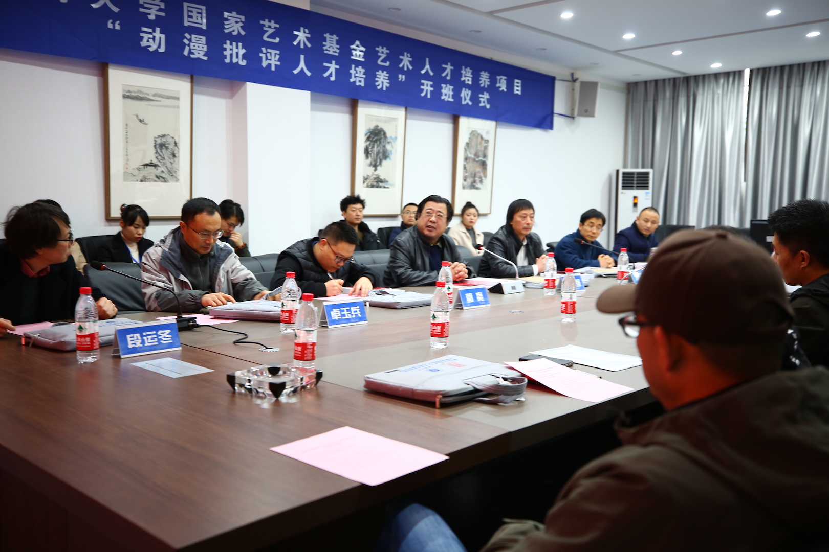美术学院院长刘曙光介绍了学院在各类人才培养、艺术创作、学术研究、对外交流等方面的成果,对本次项目学员提出了期望与要求;寇鹏程教授着重介绍了学校深厚的文化艺术发展历程和得天独厚的研修环境;桂林理工大学艺术学院院长李本建作为学员代表表达了对本次研修项目组的感谢,以及对产出高质量研究成果的期待。段运冬教授总结回顾了学校在动漫艺术领域所做出的成绩,并介绍此次项目的总体筹划、课程设置以及专家情况。