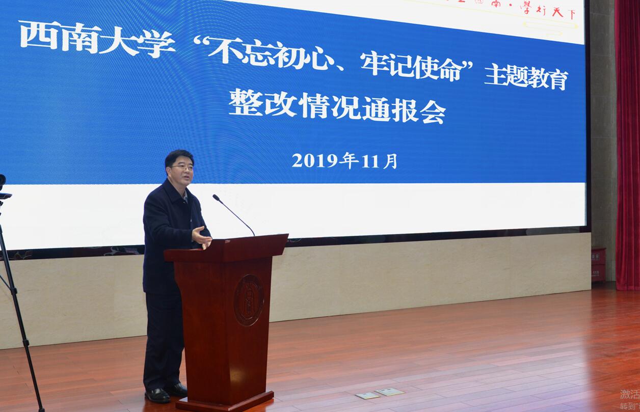 通报会上,校党委副书记、主题教育领导小组副组长潘洵介绍了学校开展主题教育整改工作的总体情况,重点围绕中央部署的“8个方面”专项整治、学校领导班子10项突出问题整改、各二级党组织各单位开展整改三个方面,向与会人员通报了整改工作的具体情况。