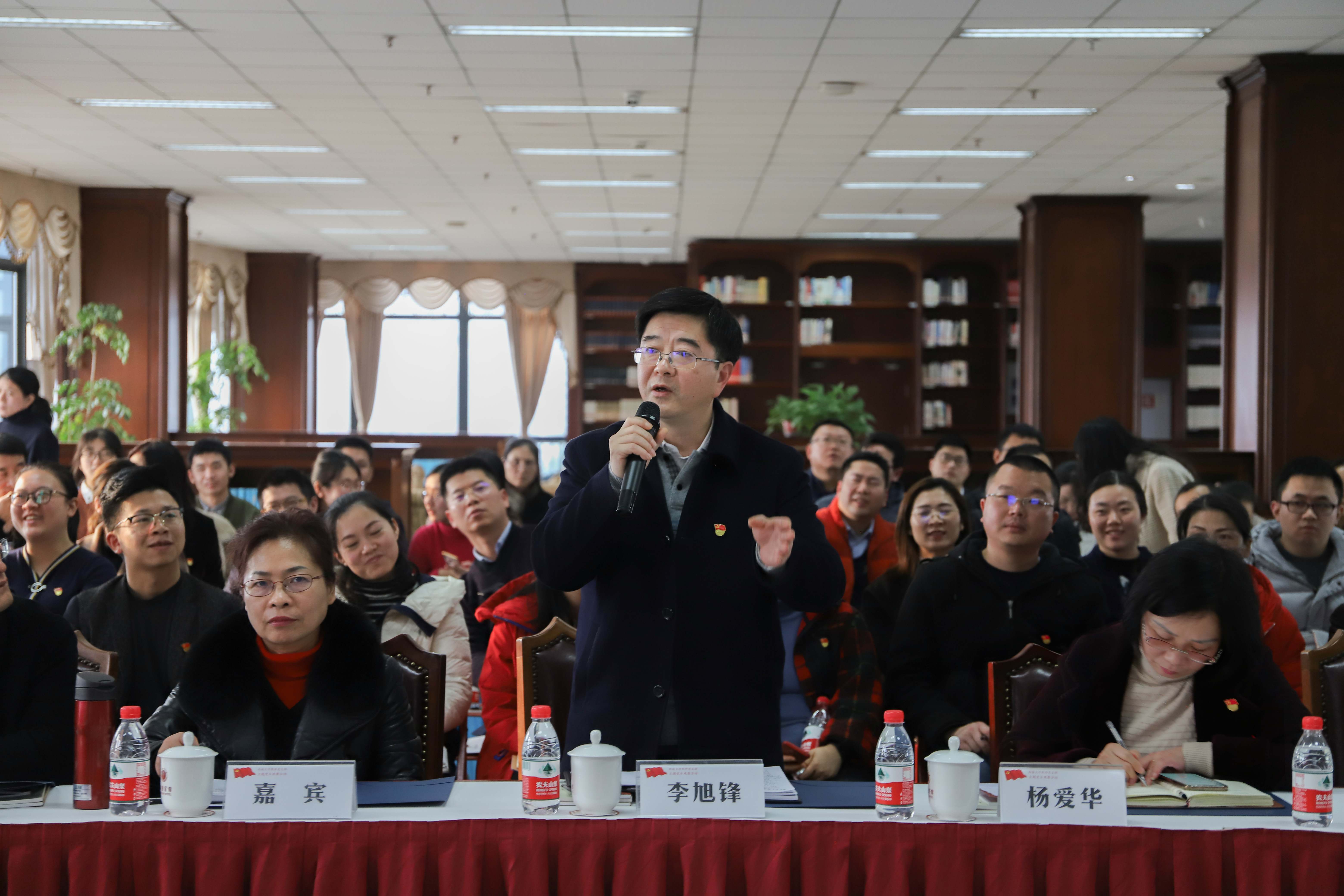 为深入推进学校“不忘初心、牢记使命”主题教育,创新和丰富党支部主题党日形式和内容,提升活动质量,增强学习效果,进一步提升党支部组织生活活力,提高基层党组织吸引力、凝聚力、战斗力、感召力,12月5日和6日,学校分别举办教师党支部和学生党支部主题党日示范观摩活动。文化与社会发展学院教工党支部和经济管理学院本科生第一党支部承办活动,二级党组织书记代表、教师党支部书记代表、学生党支部书记代表和全体专职组织员参加观摩。学校党委书记李旭锋,党委常委、党委组织部部长杨爱华参加了教师党支部主题党日示范观摩活动。