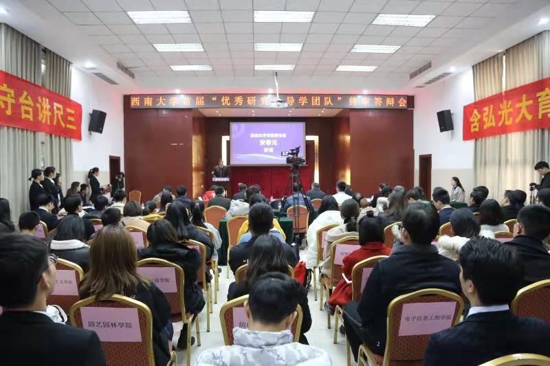 据悉,学校首届“优秀研究生导学团队”推选活动从2018年3月着手谋划,于2019年5月正式启动,由各培养单位提名推荐,经活动组委会资格审查,共30支团队入围。在第三十五个教师节之际,学校在南北樟树林及“西南大学研究生会”微信公众平台分别进行了为期两周的线上线下团队风采展示,累计发布推文32篇,累计访问量36000余人次,引起全校师生广泛关注。10月14日至10月21日,通过“西南大学研究生会”微信公众平台向全社会发起为期7天的网络投票,累计投票数740572票,累计访问量5473834人次,社会反响强烈。最终依据网络得票数排名,经活动组委会审定,共14支参选团队进入终审答辩环节。