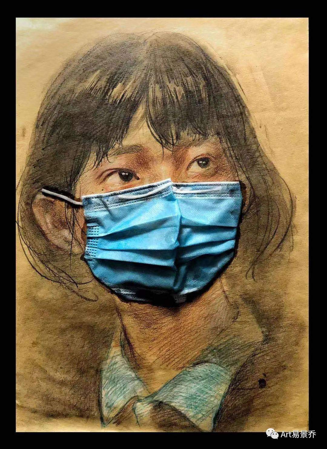 近日,西南大学美术学院本科2018级雕塑专业学生刘昱伽在家中拿起画笔,利用废弃口罩、旧抹布、旧报纸、包装袋等材料,创作出了一幅幅感人的画作。