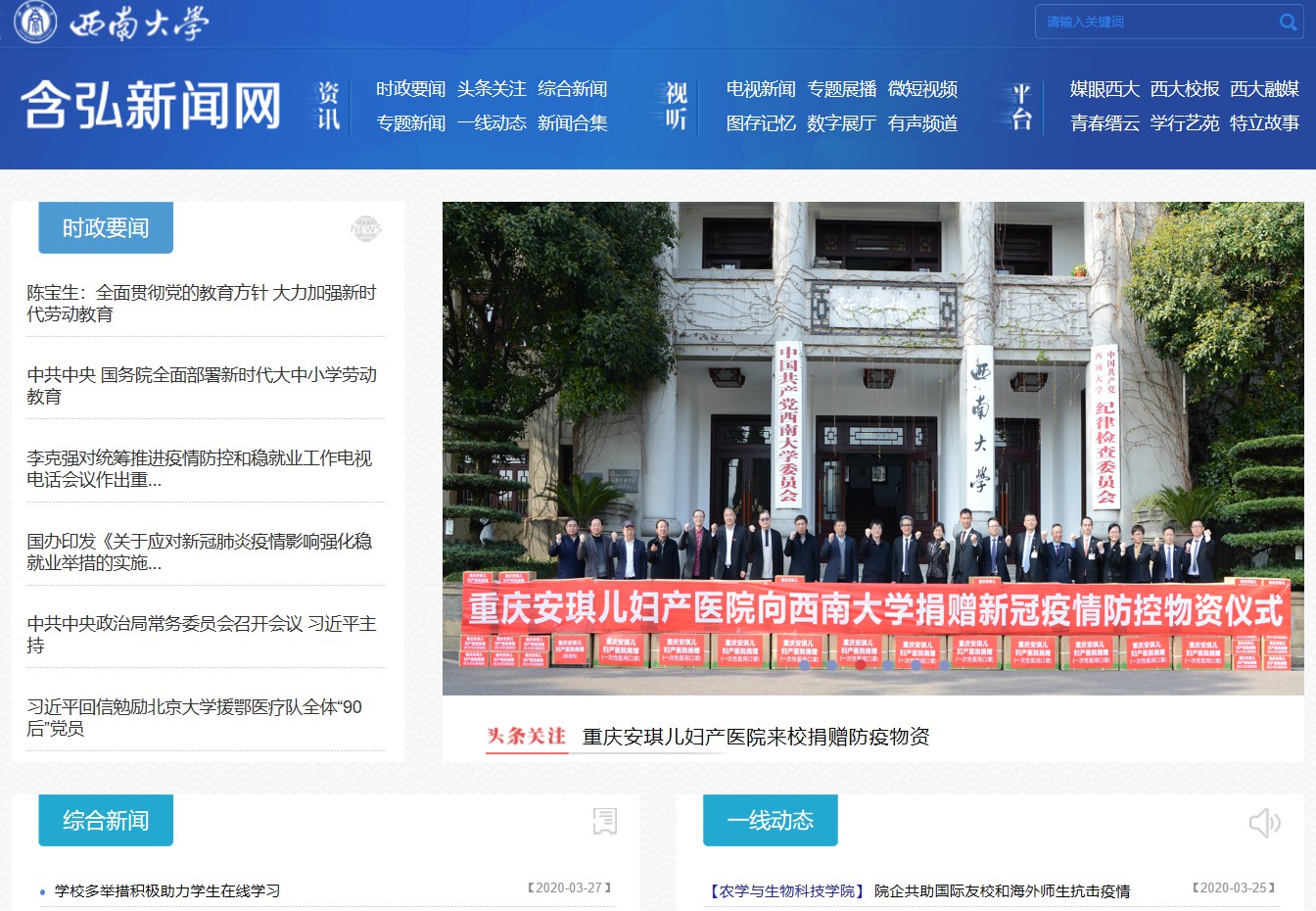 为深入学习贯彻习近平总书记关于宣传思想工作系列重要讲话精神,落实好贯彻好《中国共产党宣传工作条例》,更好地肩负起“举旗帜、聚民心、育新人、兴文化、展形象”的使命任务,充分整合学校报、网、台、广播等资源,助推学校主流媒体深度融合,构建更加贴近师生、弘扬主旋律、传播正能量的宣传阵地,3月31日,西南大学含弘新闻网正式上线运行。