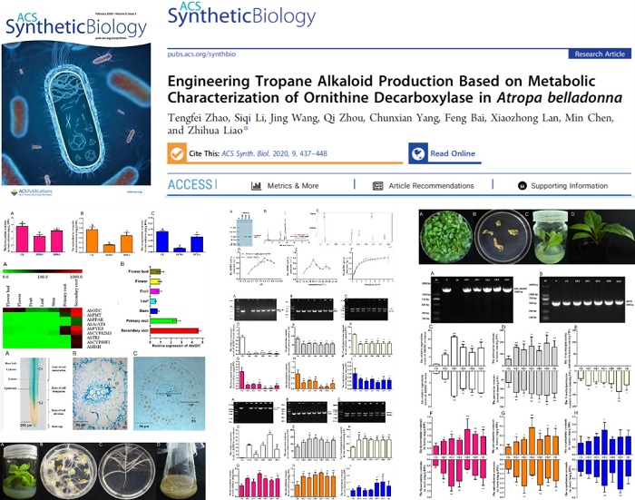该研究得到NSFC-云南联合基金重点项目和国家转基因重大专项的资助,相关成果于近期正式发表在合成生物学著名期刊《ACS Synthetic Biology》(美国化学学会·合成生物学)。学校生命科学学院博士后赵腾飞博士为该论文的第一作者,廖志华教授为该论文通讯作者。学校已就AbODC申报了相关发明专利。廖志华教授团队长期从事植物天然产物合成生物学和代谢调控研究及产业化。近年来,廖志华教授在《Molecular Plant》《Organic Letters》《New Phytologist》《Journal of Experimental Botany》和《Food Chemistry》等刊物以通讯作者发表30余篇研究论文;授权发明专利12份;东莨菪碱的相关技术成果以技术入股方式与成都新尚创业投资有限责任公司进行合作开发。