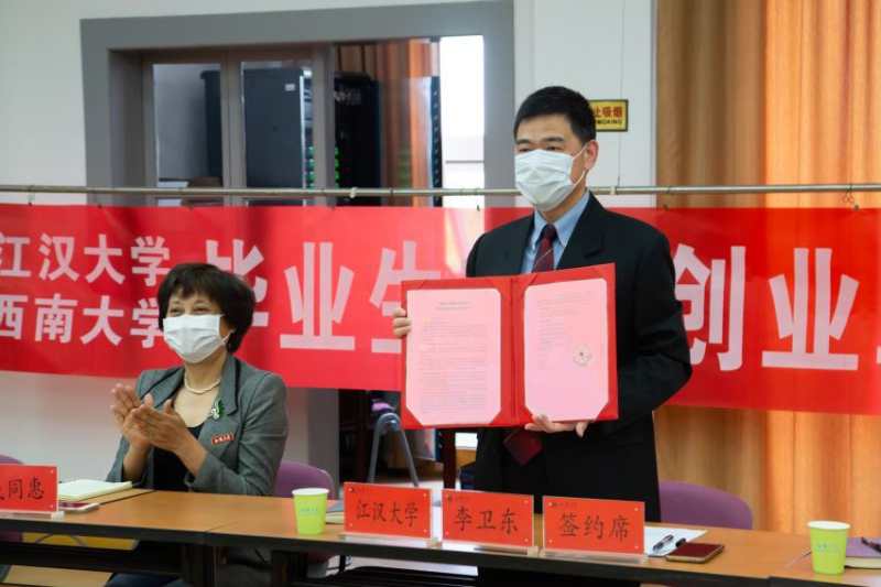 李卫东在致辞中代表全体师生向西南大学对江汉大学毕业生就业创业工作的关心、支持和帮扶表示衷心感谢。李卫东表示,教育部启动实施的就业创业“一帮一”行动是江汉大学发展的重大机遇,是向重点高校学习的重大机会,也是借力提升的重要途径。前期,两校就业、创业、教学、研工等部门的同志已经进行了充分沟通,在就业信息共享、就业市场开拓、就业指导、就业管理服务、大学生创业、实验教学等方面表达了合作意向,并且已经开展了共享就业信息平台、筹备两校联合网络招聘,组织毕业生收看就业辅导讲座等工作,搭建起了友好合作平台。以此次结对帮扶行动为契机,期望西南大学能对江汉大学毕业生就业创业工作给予大力帮扶;在人才培养、教师培训、教学改革、学科建设等方面进行深度合作;在促进江汉大学一流学科专业建设、一流人才队伍建设、一流校园文化建设上给予更多指导。渝汉两地共饮一江水,期待两校的友谊之花在长江之水的浇灌下常开不败!