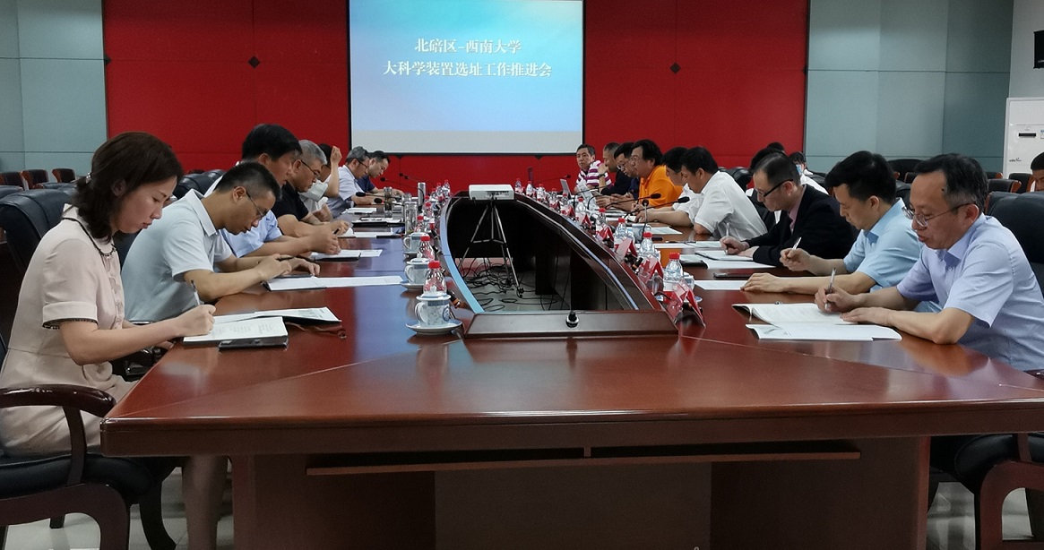 6月22日下午,北碚区人民政府在区行政中心三楼会议室组织召开北碚区-西南大学关于大科学装置选址工作推进会。北碚区区委书记周旭、区长何庆、常务副区长董伦,歇马高新区指挥长胡湧,学校党委书记李旭锋,校长张卫国,副校长崔延强、温涛、赵国华,以及学校党政办公室、发展规划与学科建设部、科学技术处、国内合作处、生物学研究中心相关部门负责人参加会议。会议由何庆主持。