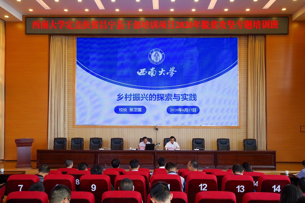 6月17日,校长张卫国以《乡村振兴的探索与实践》为题,向2020年昌宁县干部脱贫攻坚专题培训班的全体学员作专题讲座,这也标志着学校圆满完成定点扶贫昌宁县干部培训的阶段性任务。