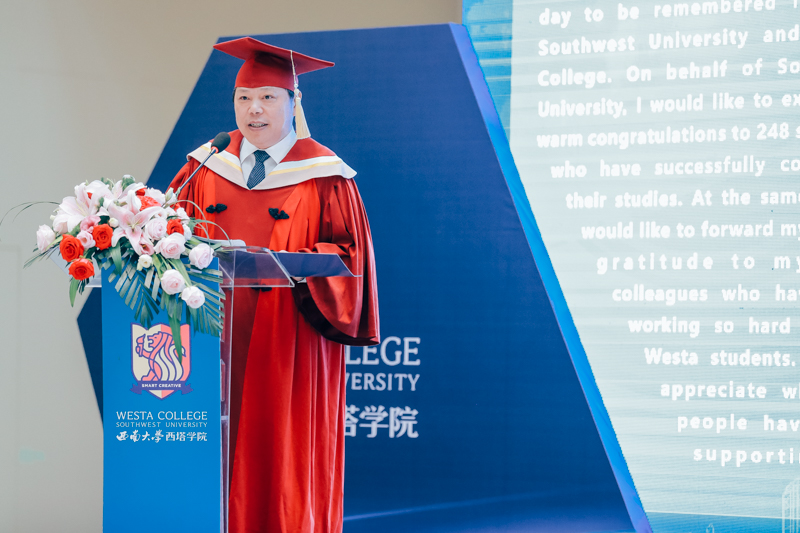 张卫国在讲话中分享了习近平总书记给北京大学援鄂医疗队全体90后党员回信中对青年人的肯定和鼓励,寄语西塔毕业生做“有梦想、有担当、有底线”的人。张卫国还特别提到他在2016年迎新现场曾与六位西塔学子合照,并对六位毕业生的成长给予肯定。张卫国强调,学校会更加坚定地办好西塔学院,培养更多优秀人才,西南大学永远是同学们坚强的后盾,欢迎同学们常回家看看。