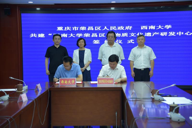7月2日,学校与荣昌区政府共建非物质文化遗产研发中心签约仪式在荣昌区政府行政中心举行。学校副校长崔延强率荣昌校区主要党政领导和学校党政办、社科处、国内合作处等职能部门负责人出席签约仪式,社科处负责人代表学校与荣昌区文化旅游委签署合作协议。