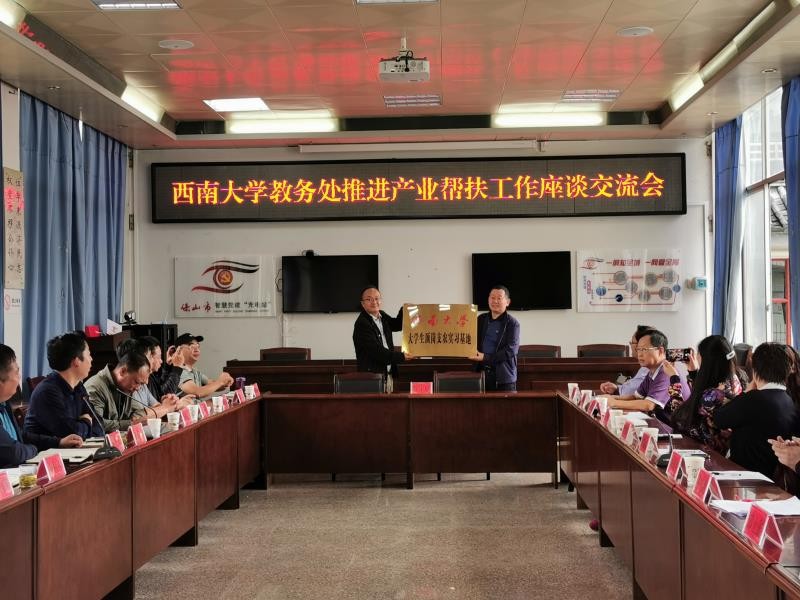 在昌宁县农业农村局,校县双方共同召开产业帮扶工作座谈会,双方共同签订“西南大学顶岗支农实习岗位”协议,并举行“西南大学大学生顶岗支农实习基地”授牌接牌仪式。学校将根据昌宁县农业农村发展需要,每年选派一批优秀农科类学生赴昌宁县开展实习实训和支农服务。与会的农技推广机构负责人围绕脱贫攻坚、农业农村现代化、乡村全面振兴、山水林田湖草系统治理等方面提出农业人才培养需求,为学校新农科人才培养提供参考。