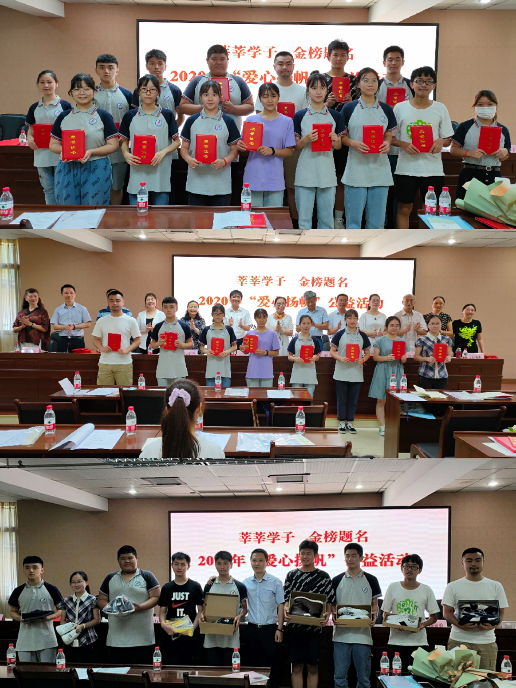 叶晓娅汇报四年来扶贫助学筹款、资助学生情况及本次资助情况,对各位爱心人士表示感谢。游先慧宣读受资助学生名单,参会嘉宾向受资助学生发放资助金一千元,向爱心人士颁发锦旗、奖牌及荣誉证书。
