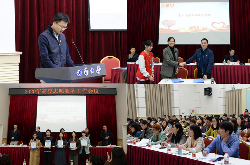 会上,团市委向各高校介绍重点志愿服务项目,推介重庆市青年社会组织成长发展基地,部署大学生志愿服务进社区的工作要求,发布重庆市近期重点赛会志愿服务项目,向重庆市“公益青春”“青少年之家”大学生志愿服务项目大赛获奖项目颁奖。其中,学校“西小兰”青春筑梦课堂、“厨余垃圾”美育赋能计划两项目获金奖。同时,学校团委等三所高校共青团的负责人发言,并与团市委围绕“青少年之家”等重点志愿服务项目签约。