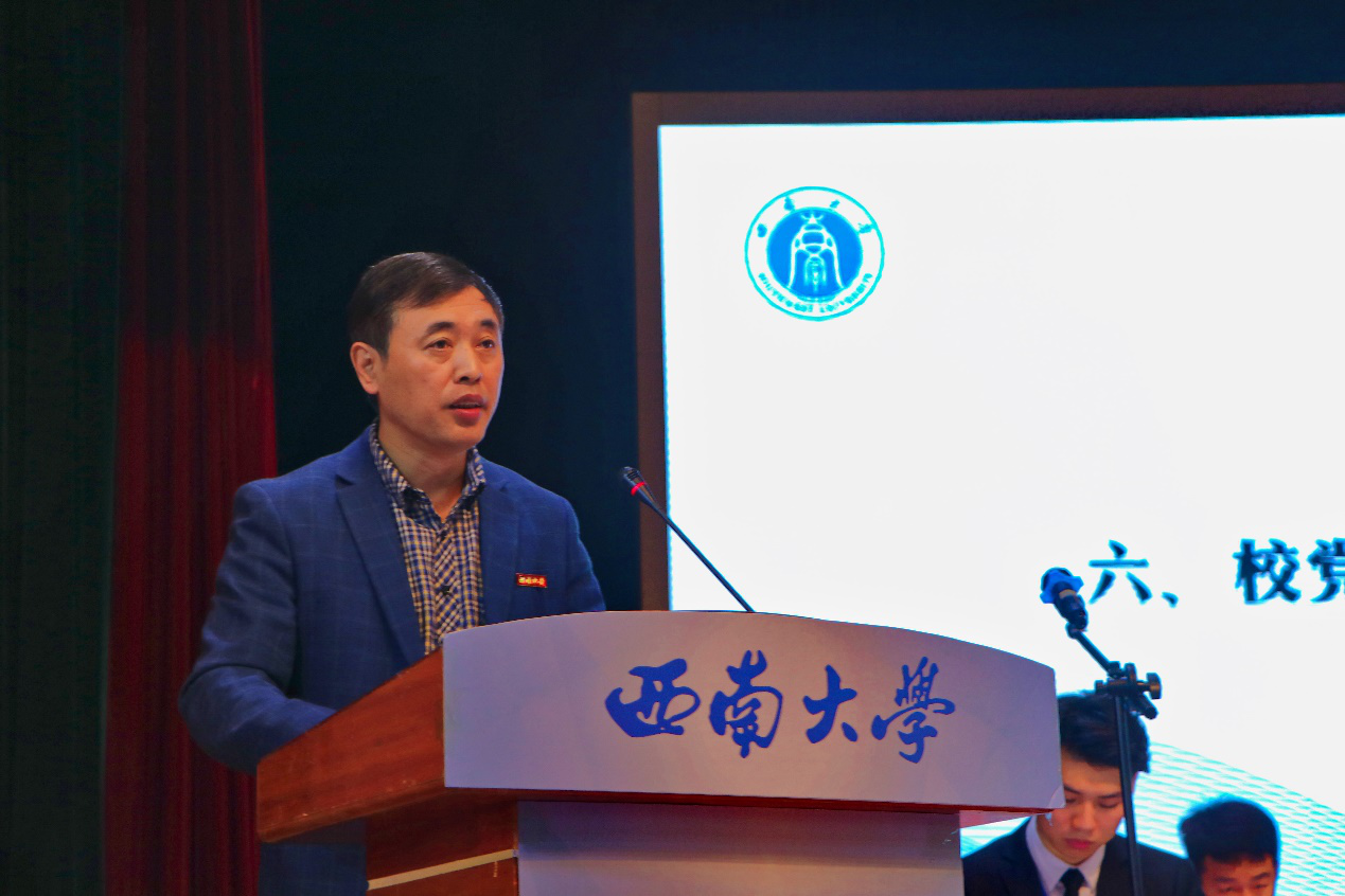 潘洵出席第六届学生委员会第一次全体会议并发表讲话。用“方向、思维、能力、实效”四个关键词对各位学生委员提出殷切嘱托,他强调,希望各位委员以本次大会为新起点,倍加珍惜学校党委、全校广大同学的信赖和期望,牢记全心全意为同学服务的宗旨,锐意进取、改革创新,努力开创学校学生会工作的新局面,团结带领广大同学在投身强国伟业的生动实践中绽放青春。
