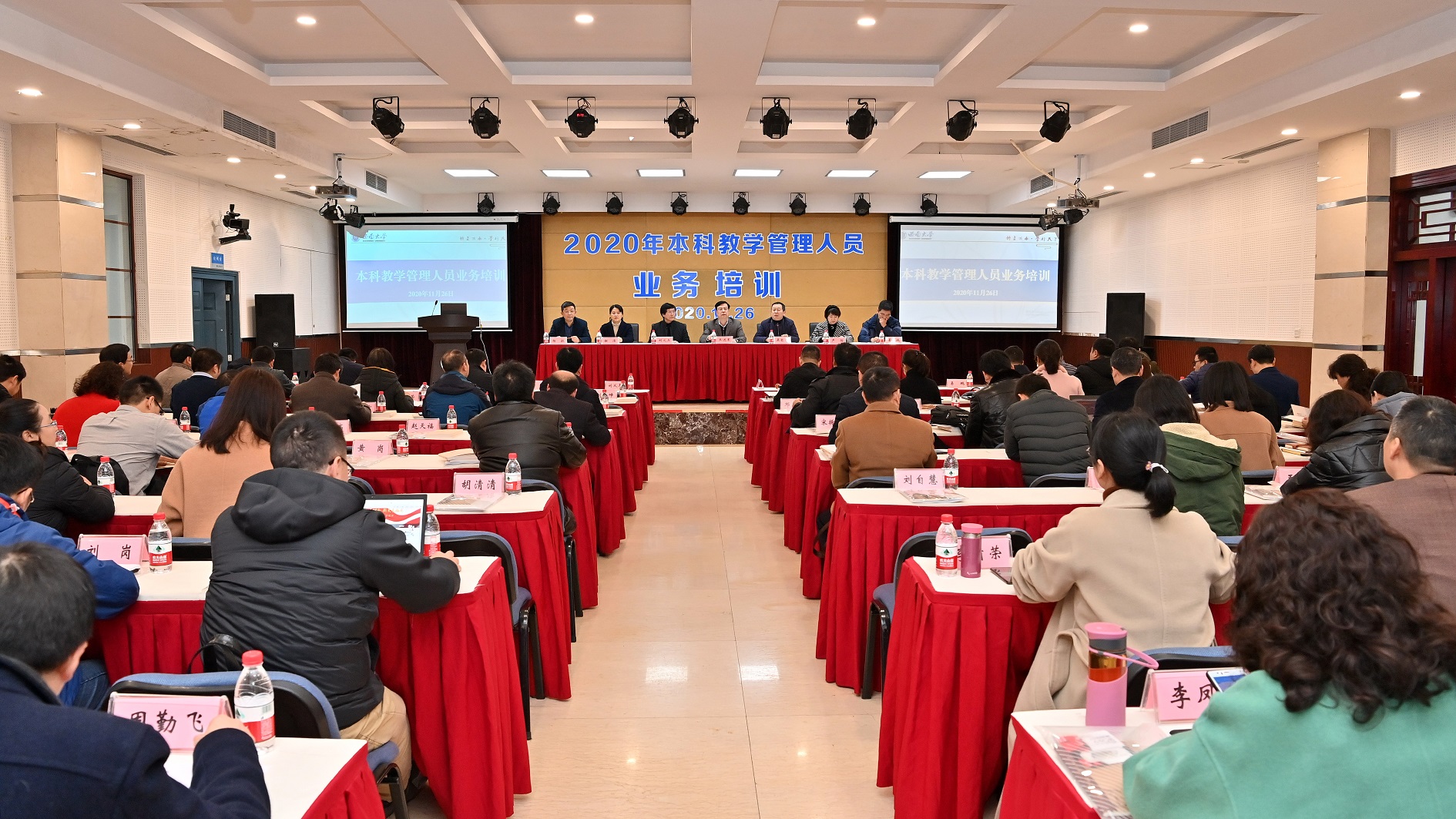 为强化学校本科教学管理队伍建设,提升本科教学管理干部管理能力,推进由教学管理到教学治理的转变,11月26日下午,教务处组织召开2020年本科教学管理人员业务培训。副校长王进军出席会议,教务处负责人、各单位分管本科教学负责人、各单位教学办公室负责人参加会议。会议由教务处主要负责人主持。