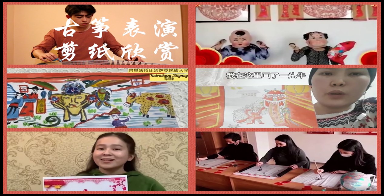 当地时间2月5日晚,由学校共建阿布莱汗国际关系与外国语大学孔子学院承办的2021年阿拉木图地区“中国春节文化趣事会”成功在线上举行。中国驻阿拉木图总领馆副总领事仲华、阿布莱汗国际关系与外国语大学副校长塔提亚娜·弗拉基米尔若弗娜、西南大学副校长王进军出席并致辞。中国驻阿拉木图文化旅游领事王庆平、哈萨克劳动与社会关系学院校长别斯巴耶娃·巴燕、阿布莱汗孔子学院中方院长石隆伟、西南大学国际合作与交流处、国际学院相关负责人、阿拉木图地区汉学家们和当地11所高校汉语专业的500余名师生参加活动。