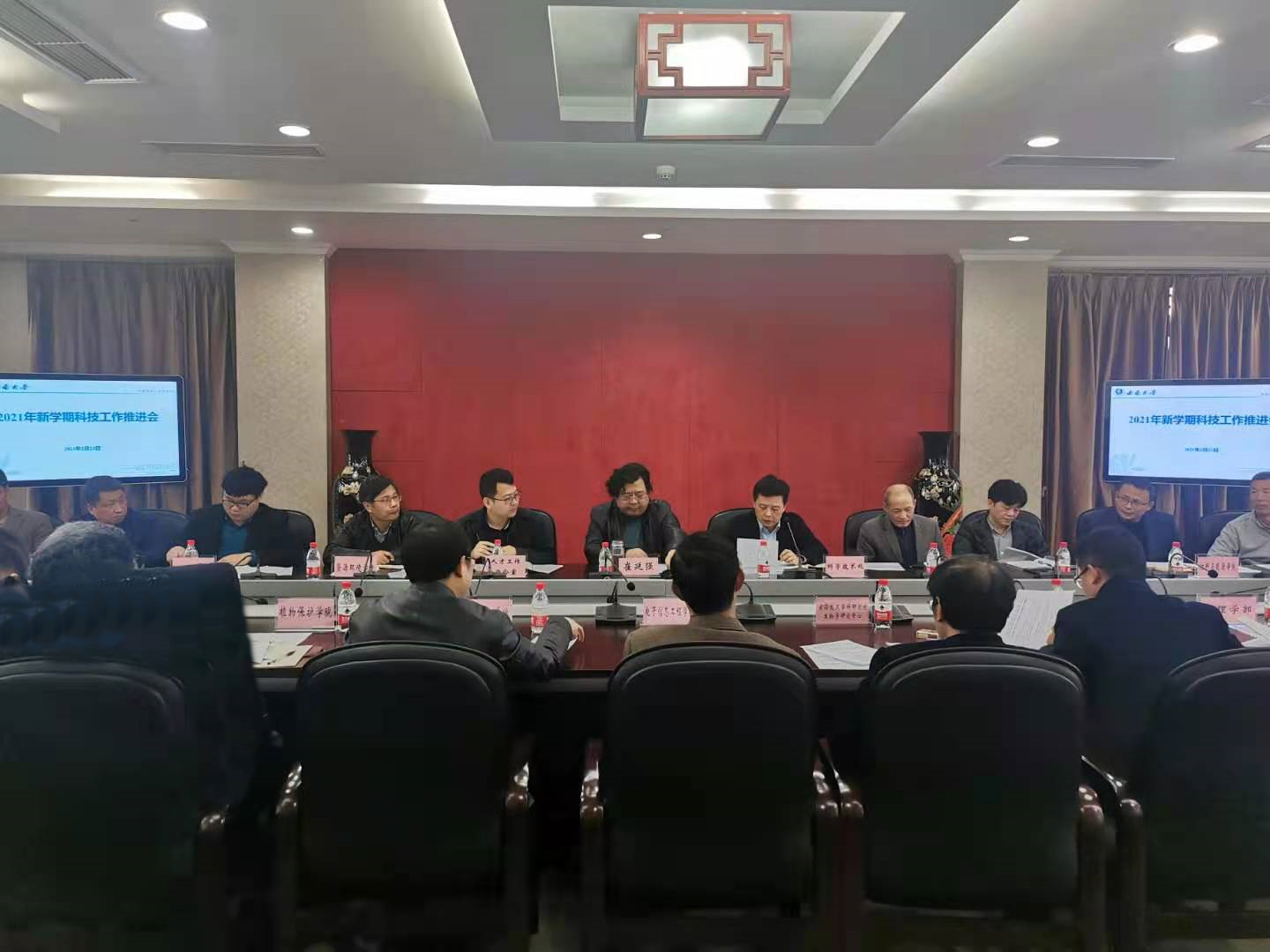 科学技术处相关负责人介绍学校推进种质创制大科学中心和北碚西南大学科学中心建设进展情况,就近期国家自然科学基金委有关海外优青项目申请、科技部有关人才引进推荐工作进行安排;党委组织部相关负责人就学校人才引进政策进行说明。