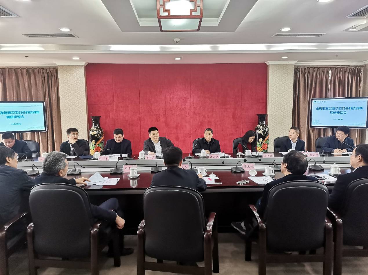 3月11日,重庆市发展改革委党组成员、副主任米本家,市政府研究室及发改委相关处室负责人来校就科技创新工作开展调研。副校长崔延强出席并主持会议,重庆市材料研究院、重庆市蚕业科学技术研究院,学校学术委员会、科学技术处、相关学院(部)和科研机构负责人及专家代表参加会议。