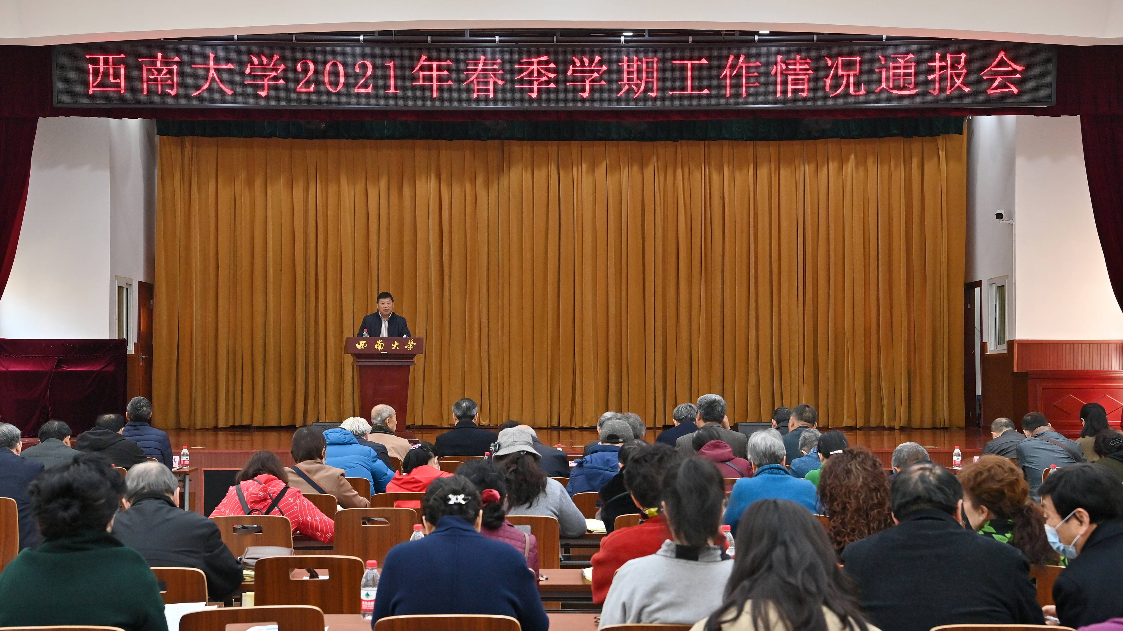 3月12日上午,校长张卫国在教职工活动中心向离退休教职工通报2021年学校工作情况。学校党委副书记安春元主持会议。离退休校级老领导,离休干部代表,离退休党委委员、纪委委员、支部书记,退休行政小组组长,退休处级干部活动服务组组长,校关工委老同志代表,教代会老同志列席代表,老年群团组织代表等100余人参加会议。