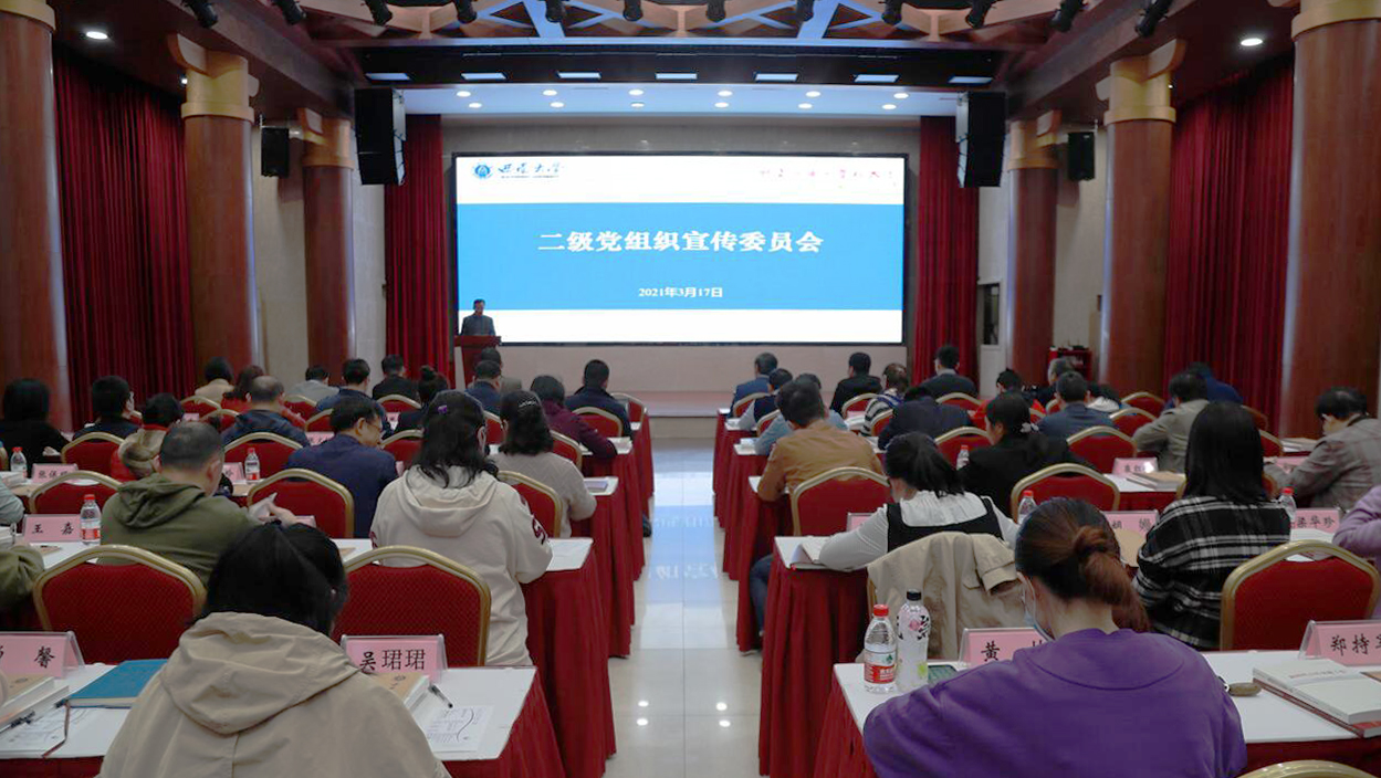 3月17日下午,学校在东方红会议厅召开二级党组织宣传委员会。学校党委副书记潘洵,党委常委、党委宣传部、党委网络工作部部长李荣华出席会议,党委宣传部、党委网络工作部相关负责人及科级以上干部,学校二级党组织宣传委员参加本次会议。
