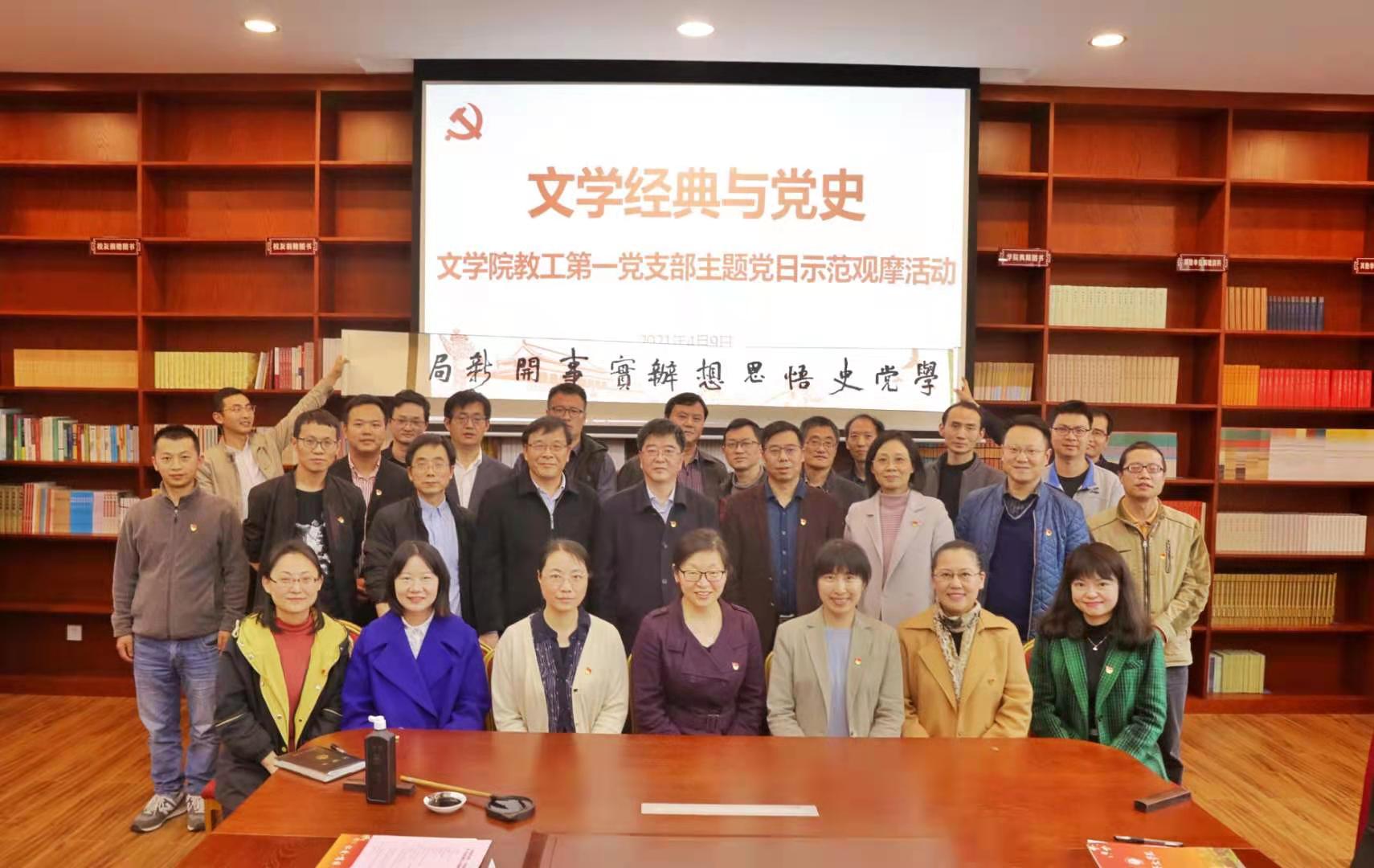 4月9日下午,学校全国党建工作样板支部——文学院教工第一党支部在学院院史陈列室举行“文学经典与党史”主题党日示范观摩活动。本次活动结合文学专业特点,从学者角度讲述文学与党史的血肉联系、文化名人与中国革命的感人故事,开启文学视角下的党史学习教育新形式,提升党史学习教育的实效,让党史学习教育入脑入心。