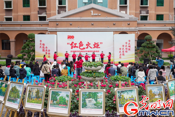 展油画、说快板、讲评书……4月20日,在西南大学(重庆)产业技术研究院中心广场上,学校与北碚区成立的“红色火炬”校地联合党史宣讲团正用多种艺术形式的党史教育面向互联网行业轮番“开讲”。活动受到光明网、重庆日报、重庆卫视、上游新闻等多家媒体广泛报道。