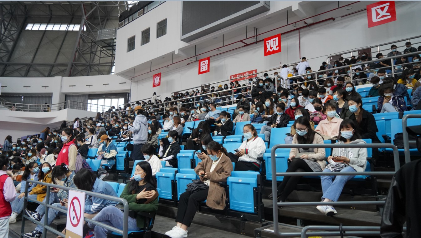 此次新冠疫苗接种工作由校医院牵头组织,接种场地充分利用学校中心体育馆,在入口处设置新冠疫苗接种流程图及新冠疫苗科普知识,让同学们在接种前提前了解新冠疫苗接种注意事项;集中接种点的布置,秉持着“单循环、不走回头路”的原则,科学合理规划了等候区、信息登记区、接种区、留观区、巡回观察点、AEFI处置区、医疗废物区、后勤保障区、疫苗管理区等工作区域,各个区域标识清晰明白,重要岗位都安排有医务人员和志愿者引导服务。其中,设置18个信息登记区及18个接种区,留观区能容纳五六百人同时留观。