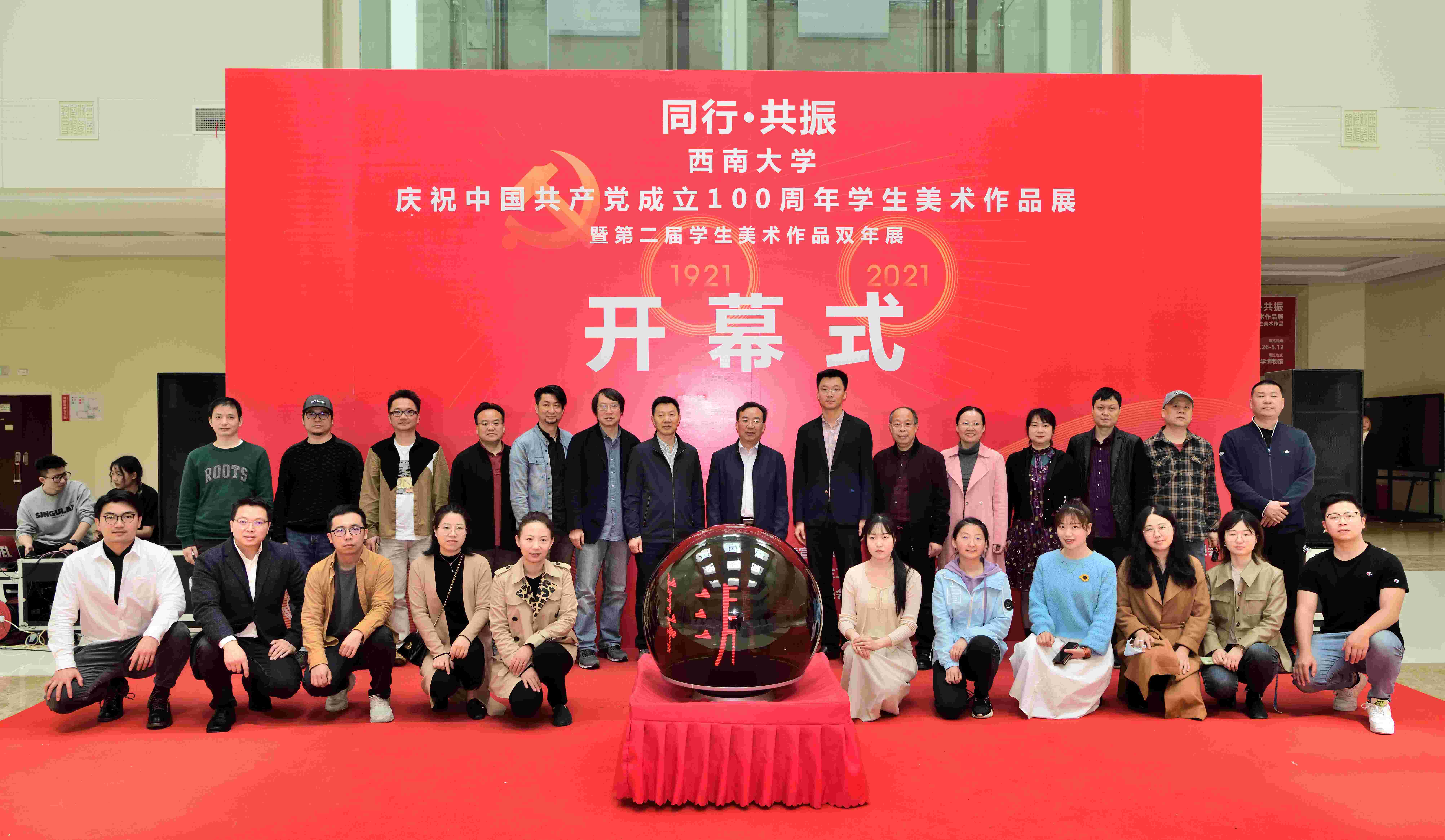 4月26日上午,“同行·共振”西南大学庆祝中国共产党成立100周年学生美术作品展暨第二届学生美术作品双年展在学校博物馆开幕。学校党委常委、党委宣传部部长、党委网络工作部部长李荣华出席开幕式,校团委、教务处、党委研究生工作部、博物馆和美术学院相关负责人以及师生代表参加开幕式。