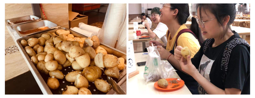 从课堂到田间,从生产到餐桌。5月1日,在“五一”国际劳动节来临之际,学校农学与生物科技学院农学专业学生在生产劳动中亲身种植的马铃薯获得大丰收。为分享劳动成果,经学校教务处统筹协调,积极开展“我为师生办实事”的党史学习教育实践:由后勤集团膳食中心将学生种植的马铃薯进行精心加工后,在全校9个食堂开设专门的免费品尝窗口,邀请广大师生共享劳动成果,体验劳动快乐。
