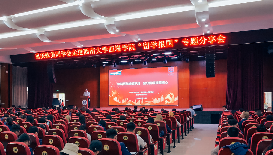 铭记百年峥嵘岁月,坚守留学报国初心。为进一步加强党史学习教育,发挥留学人员爱党爱国爱社会主义的典型示范带动作用,5月14日下午,由重庆欧美同学会主办、西南大学西塔学院承办的“铭记百年峥嵘岁月,坚守留学报国初心——重庆欧美同学会留学报国故事分享会”在学校第二学生活动中心107举行。学校副校长陈时见、重庆欧美同学会留学人员代表及300余名西塔学院师生代表参会。重庆欧美同学会党组书记、秘书长范文佳主持分享会。