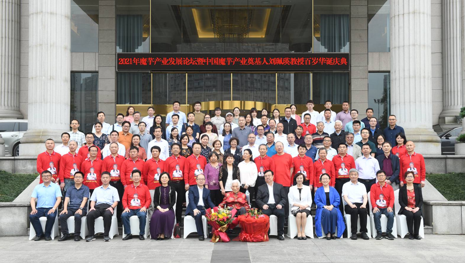今年是建党100周年,是全面实施乡村振兴战略的开局之年。魔芋产业是我国山区农户脱贫增收的重要支柱产业,也是乡村振兴的重要抓手。恰逢我国著名蔬菜学家、中国魔芋产业奠基人、园艺园林学院刘佩瑛教授百岁华诞。为探讨魔芋产业在后续脱贫成果巩固、乡村振兴中的思路和策略,同时展现刘佩瑛教授与党同岁、与党同心的永恒初心,彰显她在魔芋产学研方面的卓越成就,5月15日,学校园艺园林学院、中国园艺学会魔芋协会和重庆西大魔芋生物科技有限公司于北碚联合举办2021年魔芋产业发展论坛暨中国魔芋产业奠基人刘佩瑛教授百岁华诞庆典。刘佩瑛教授及其亲属、弟子,民盟重庆市委副主委、重庆理工大学校长杜惠平,中国园艺学会副秘书长胡鸿,北碚区政协副主席、民盟区委主委李静,西南大学副校长王进军,西南大学党委常委、组织部部长杨爱华,宜宾市屏山县委副书记、副县长徐轶,沐川县副县长姜华,重庆市农业农村委处长马平,四川省农业厅调研员杨莉、四川省农科院副院长潘海平,陕西安康市农科院院长张百忍,屏山县农业农村局局长陈斌,行业协会代表出席活动,西南大学职能部门及二级学院代表等参加活动。活动由学校园艺园林学院党委书记李雪梅、院长宋洪元主持。