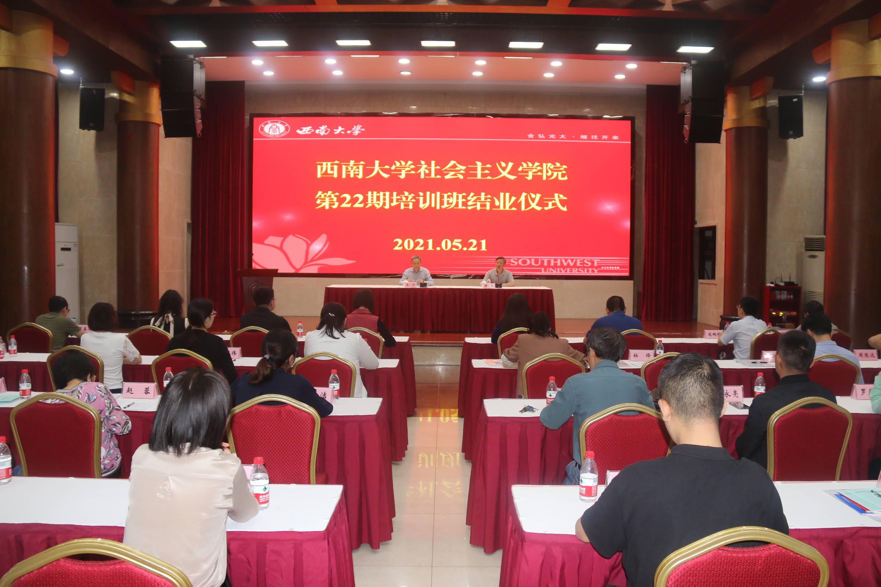 5月21日下午,学校举行社会主义学院第22期培训班结业仪式。学校党委副书记、纪委书记李华出席并讲话,为学员代表颁发结业证书。党委统战部常务副部长、社会主义学院教务长周文全主持会议。学校各民主党派基层组织负责人参加结业仪式。