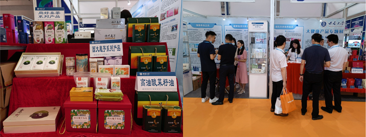 学校本次参展产品为校办企业、技术合作企业、师生创业企业及平台孵化企业的大健康产品,包括绿色天然食品、健康检测与医护品、天然健康养护品等3大类17个系列100多个产品。产品主要来自西农茶叶公司、西大魔芋公司以及材料与能源学院、资源环境学院、食品科学学院、农学与生物科技学院、园艺园林学院、蚕桑纺织与生物质科学学院、药学院、柑桔研究所等单位教师团队研发的系列产品,展会现场工作人员进行检验检测、样品品鉴等体验式活动,匈牙利驻重庆总领事葛凯达还专门来到展位品尝西南大学中匈果酒白兰地研究室研制的清咔(CHINKA)水果蒸馏酒。