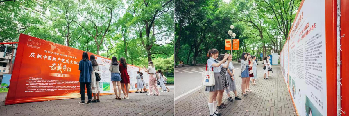 据了解,这场“最美寻访”校园巡展是西南大学新闻传媒学院党委庆祝建党百年系列活动的组成部分,被纳入西南大学党史学习教育创新成果。展览自6月18日开始,将持续展出3日。展览展出的报道是“西大快点”网络文化工作站的实践训练营成果,以新闻报道为载体,让同学们从细处着眼,从先进个体出发,寻访党史故事、展现党员形象、记录国家发展,进一步加强党史学习教育成果。