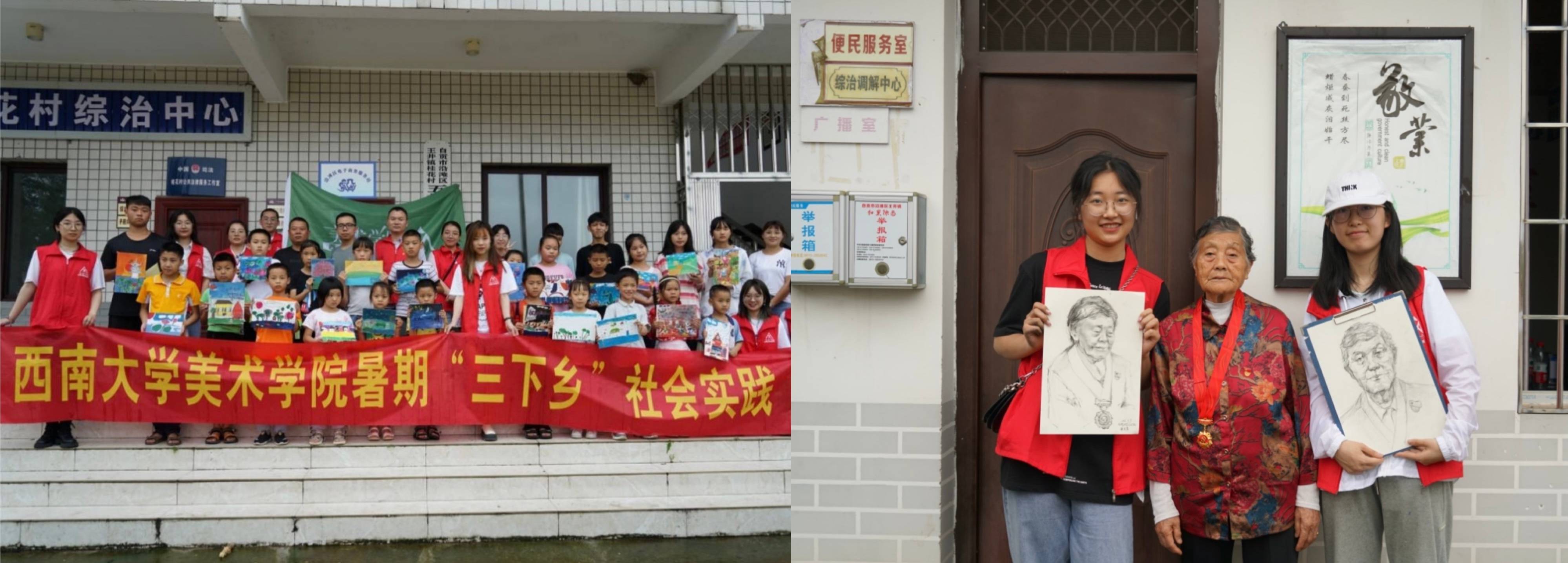 近日,美术学院暑期“三下乡”文化艺术服务团深入自贡沿滩区王井镇基层一线,采取志愿服务与党史学习教育结合的形式,发挥学生党员的引领作用,利用专业优势,开展“为老党员画像”“为爱上色”等丰富的社会实践活动。