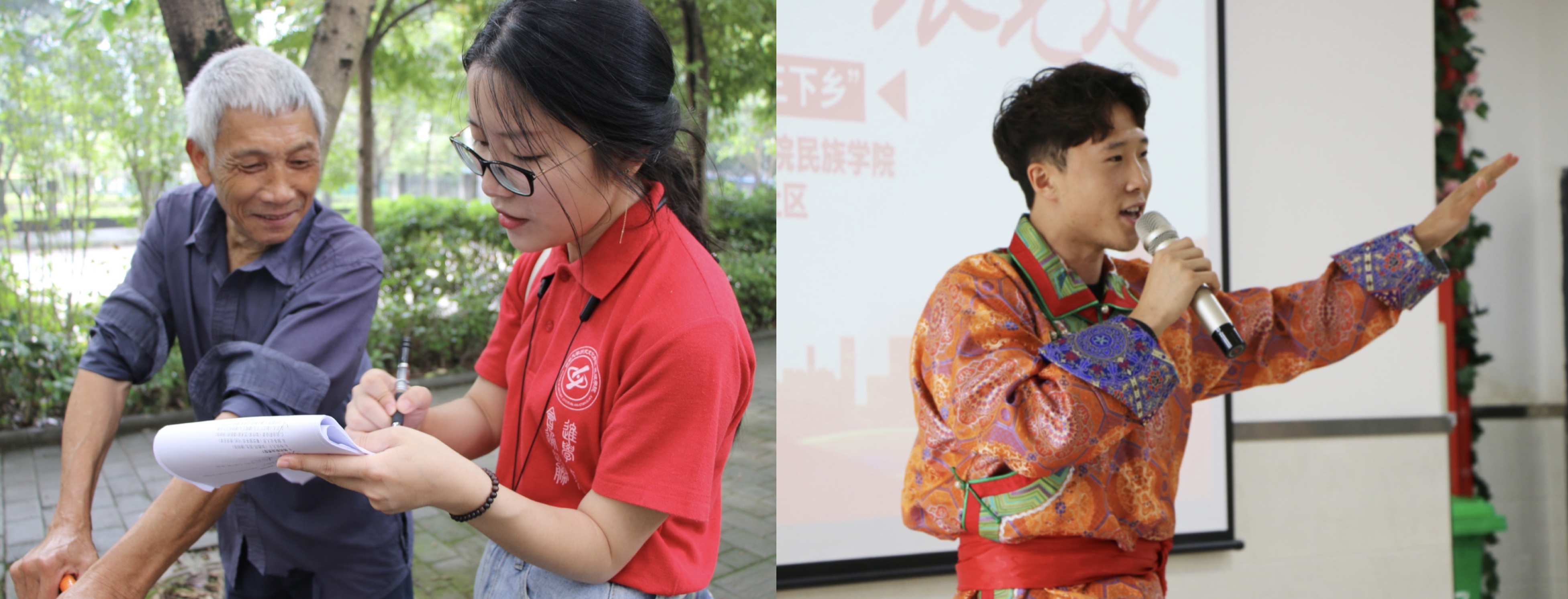 在天府民居社区养老中心,实践团开展“永远跟党走 奋进新时代”主题文艺汇演活动,通过表演节目演绎党史故事,为养老中心的老人们带来关怀与慰问。汇演中,实践团志愿者先后带来《跃动青春,礼赞百年》啦啦操表演、《灯火里的中国》舞蹈、《英雄赞歌》朗诵、蒙古族爱国歌曲《母爱之灵》、民族舞蹈《民族风情》等节目,他们身着不同民族的传统服饰,以独特风格,展现中华民族的多彩文化。